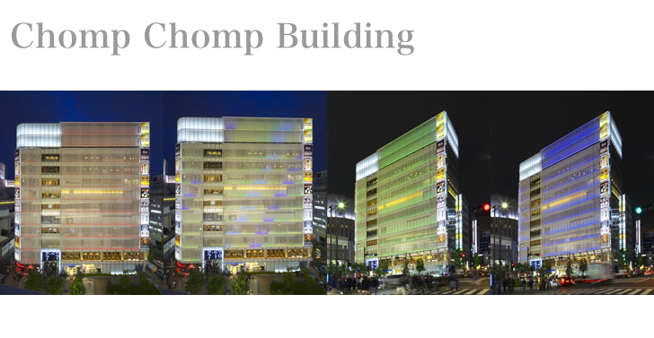施設の愛称「chomp chomp(チョムチョム)」は、英語でおいしいものを食べる音のイメージを表しています。主に20代~30代の女性の感性を満たす、飲食関連を中心とした16のテナントが出店。夜には1200個のLED(発光ダイオード)による1600万色もの光のイルミネーションが外観を彩ります。カップルやご家族でご来店いただいてもきっとご満足いただける多彩な空間をご用意しております。